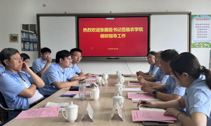 2025年6月20日上午,学校党委书记张殿臣率队来农学院开展专题调研。围绕“党建引领学校高质量发展”主题,通过听取汇报、座谈交流、实地走访等形式,深入了解农学院的专业建设、人才培养、学科建设等方面的发展现状,为推进落实立德树人根本任务把脉走向。农学院直属党支部书记刘晓华、院长王凯荣、学院院务会成员及全体教师参加调研。